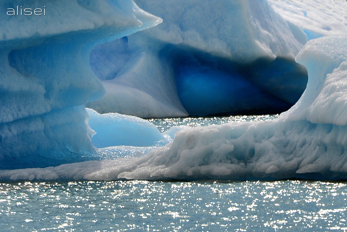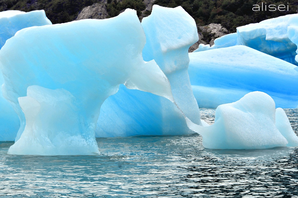 Conclusa la visita allo Spegazzini navighiamo per tornare a Porto Bandera da dove siamo partiti, sulla strada del ritorno le motonavi si avvicinano ad una grande insenatura dove galleggiano liberamente molti iceberg, Muovendosi lentamente e sinuosamente tra di essi, le imbarcazioni si avviciniamo decisamente a questi incredibili blocchi alla deriva, incredibili per le dimensioni e per le forme che essi assumono quando si staccano dal ghiacciaio, quando si spezzano, quando si dividono e quando alla fine si sciolgono i modo non omogeneo formando figure irripetibili e tutte diverse tra loro.
